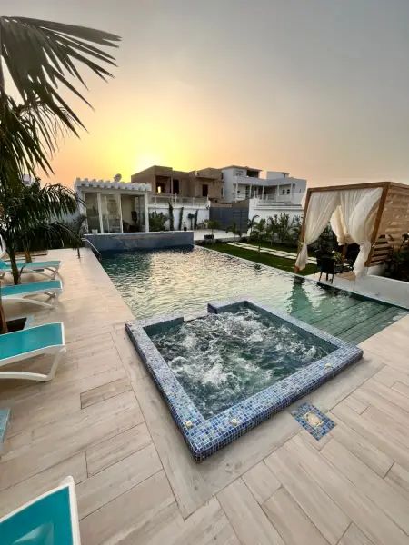 Villas élégantes avec piscine privée, espaces communs chaleureux et équipements haut de gamme.